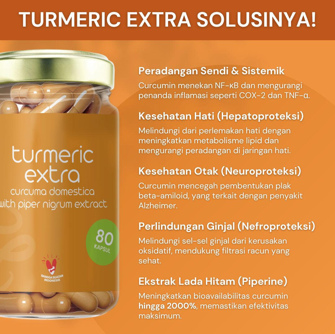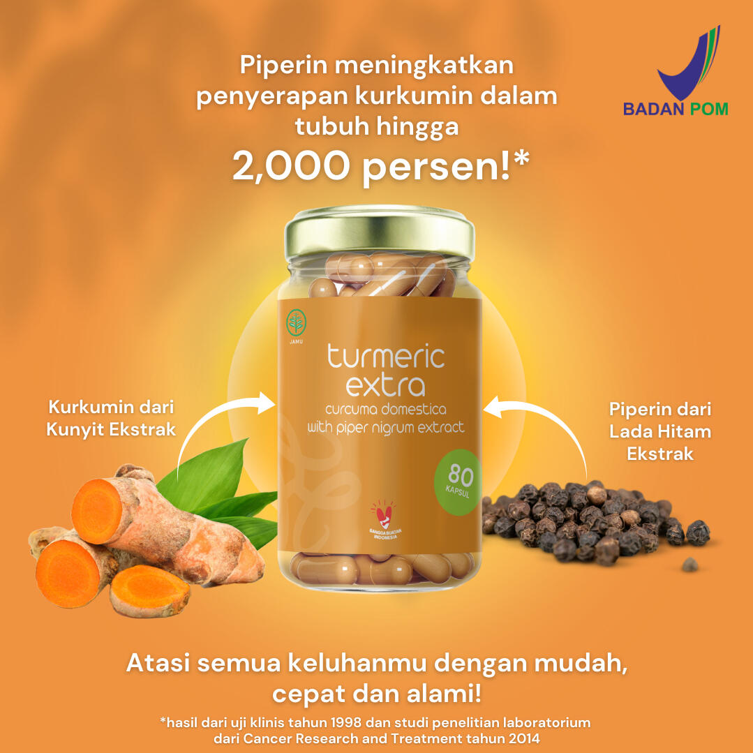 Kurkumin dalam bubuk kunyit biasa diserap tubuh dengan sangat rendah. Formula Turmeric Extra dari Nilaya dirancang untuk meningkatkan